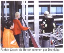 mussten. Weil der Hauptausgang versperrt war, flüchteten laut Übungsplan zwölf