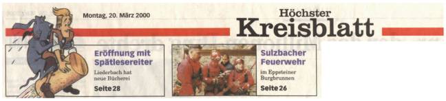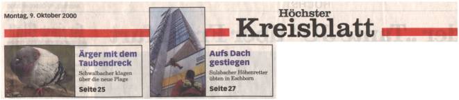 Heyrothsberge in Sachsen Anhalt. „Das Land Hessen zahlt dazu keinen Verdienstausfall, weil die Höhenrettung noch nicht zur normalen Brandschutzausbildung zählt", so Christian. „Die Gemeinde Sulzbach sponsert zumindest aber ein Taschengeld für die Lehrgangsteilnehmer.“ Die Höhenrettung, die vergleichbar ist mit einer imposanten Zirkusnummer, wird in dem Geschichtsbuch der 70 Jahre alten Sulzbacher Wehr bestimmt immer ein besonderes Kapitel sein. (wm)