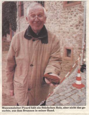 Das weitere Ziel der Untersuchung am Samstag - einen zur Brunnenkonstruktion gehörenden Holzbalken zu bergen, um daran das Alter des Bauwerkes genauer bestimmen zu können, scheiterte allerdings: Der Balken hat sich über die Jahre hinweg fast vollständig aufgelöst, so dass sich Thorsten Westphal vom Seminar für Vor- und Frühgeschichte der Universität Frankfurt mit einem Holzstück aus einer Schießscharte des Burgturmes begnügen musste. Anhand von dessen Baumringen soll der Wissenschaftler nun das Mindestalter des Holzes ermitteln. Wie alt die Burg ist, weiß niemand, das erste Mal erwähnt wurde sie 1122; vermutlich stammt sie jedoch schon aus dem 10. Jahrhundert.